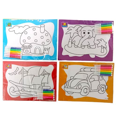 - 2 דפי צביעה דו צדדים בסה"כ 4 ציורים בכל ערכה.